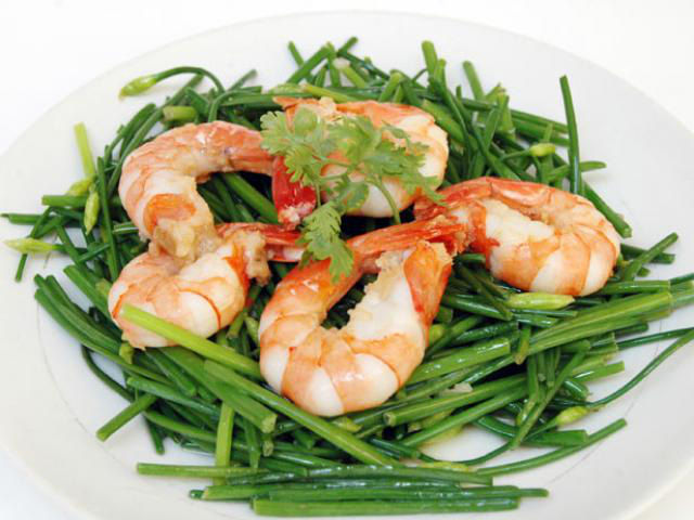 Nguyên liệu: 250g tôm nõn, 200g rau hẹ. Dùng dầu vừng xào to lửa, khi chín cho thêm gia vị mắm muối vừa đủ rồi ăn với cơm. Cần ăn liên tục 7 ngày.