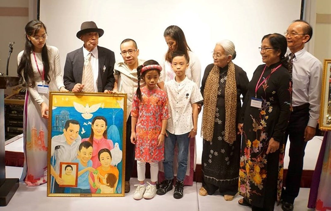 Anh Đức (thứ 3 từ trái sang) cùng gia đình và 2 con. (Ảnh: HL)