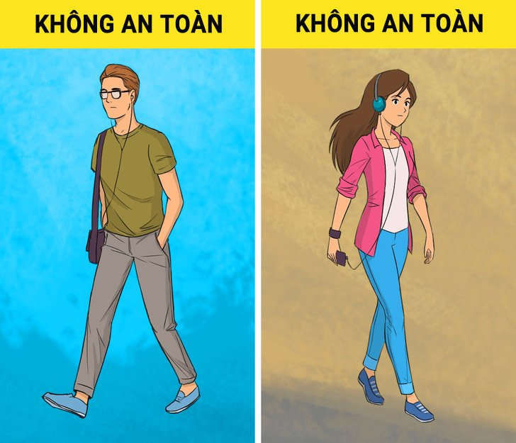 Đeo tai nghe khi đi đường là thói quen khá phổ biến. Điều này không chỉ ảnh hưởng đến an toàn giao thông mà còn dễ khiến bạn trở thành mục tiêu của tội phạm. Khi không nghe thấy các âm thanh xung quanh, bạn có thể bị tấn công từ phía sau mà không nhận diện được tội phạm.