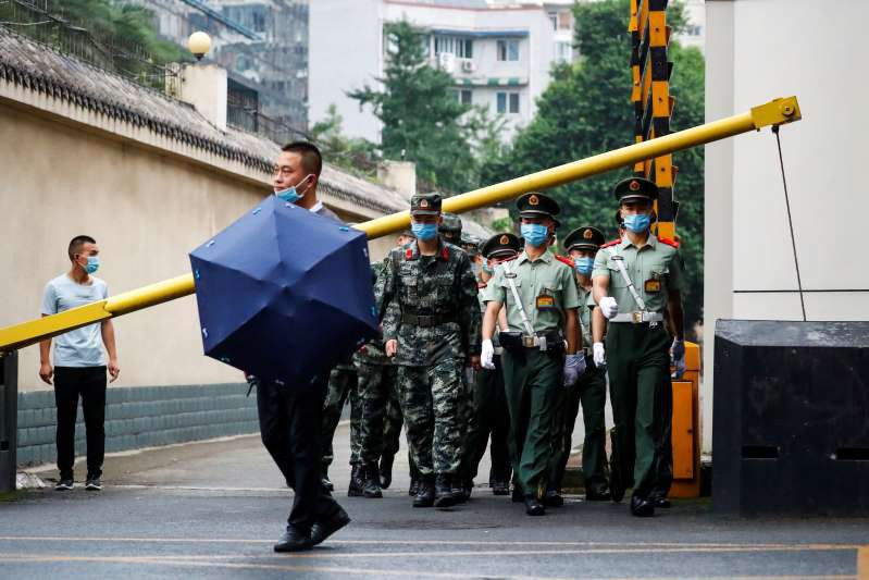 Trong khi đó, tại Lãnh sự quán Trung Quốc ở Houston, các nhân viên đã thu dọn đồ đạc. Không lâu sau khi lệnh đóng cửa có hiệu lực, một nhóm người dường như là các quan chức Mỹ đã mở cửa sau của cơ quan ngoại giao này.