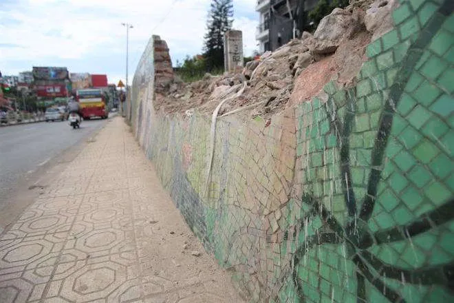 Trong thời gian tới, đơn vị thi công công trình sẽ tiếp tục phá bỏ những bức tranh gốm sứ nằm trong đoạn 600m từ khách sạn Thắng Lợi đến nút giao cầu Nhật Tân để thi công mở rộng đường Âu Cơ.