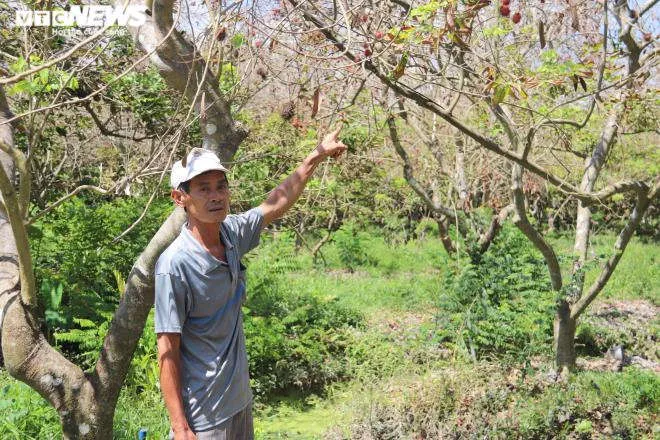 Những ngày này, đi dọc các huyện Châu Thành, Chợ Lách của tỉnh Bến Tre hay huyện Cai Lậy (tỉnh Tiền Giang)… không khó để bắt gặp những vườn sầu riêng bạc tỷ hay những vườn chôm chôm trĩu quả đang chết héo.