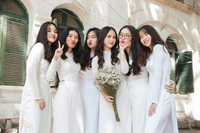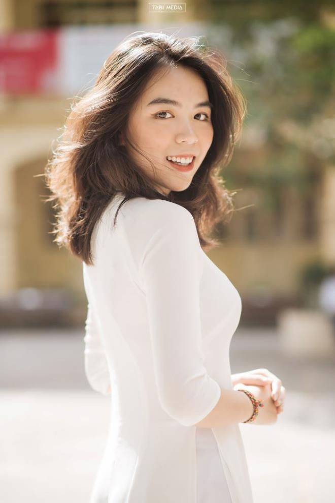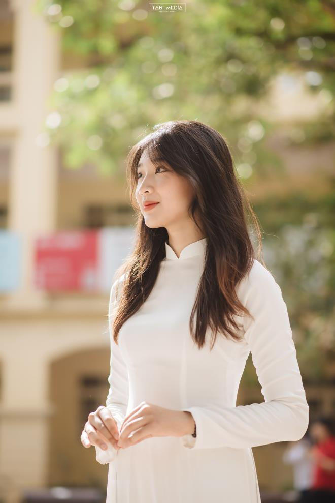Nguyễn Thu Giang (thành viên lớp 12D3 trường THPT Việt Đức) chia sẻ, khi mặc áo dài trắng, em thấy bản thân hiền dịu, nữ tính.