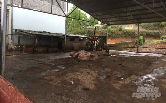 Một điểm tập kết lợn tại xã Nguyễn Huệ, huyện Hòa An trước khi đưa vào các huyện biên giới. Ảnh: Kông Hải.