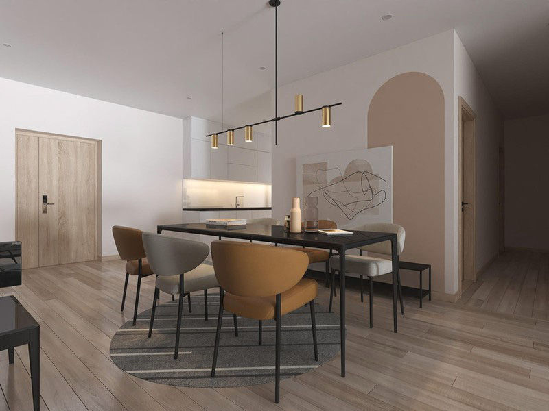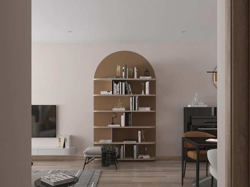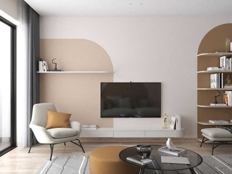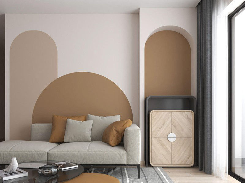 Hình vòng cung hay còn gọi là đường cát cong trên các bức tường, mang đến vẻ ngoài khác biệt cho khu vực tiếp khách.