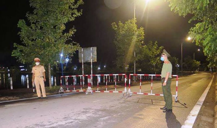 Ngay trong đêm, các chốt kiểm soát dịch đã được thành lập tại các tuyến đường ra, vào thôn Đình Tràng, phường Lam Hạ (Ảnh: CAHN)