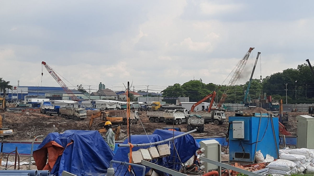Tại dự án, theo quan sát của phóng viên, ngày 10/7/2020, công trình được tiến hành thi công rầm rộ, nhiều cần cẩu (máy xúc đất) đang tiến hành đào hầm làm móng, nhiều đoàn xe tải nối đuôi nhau chở đất, vật liệu, cọc, xếp hàng dài tại phía bên ngoài mặt tiền quốc lộ 13 (đại lộ Bình Dương). Phía bên trong một số phần đã được đào sâu xuống lòng đất khoảng từ 2 đến 5 mét so với bề mặt, nhiều công nhân vẫn rầm rộ xây dựng trong công trình.