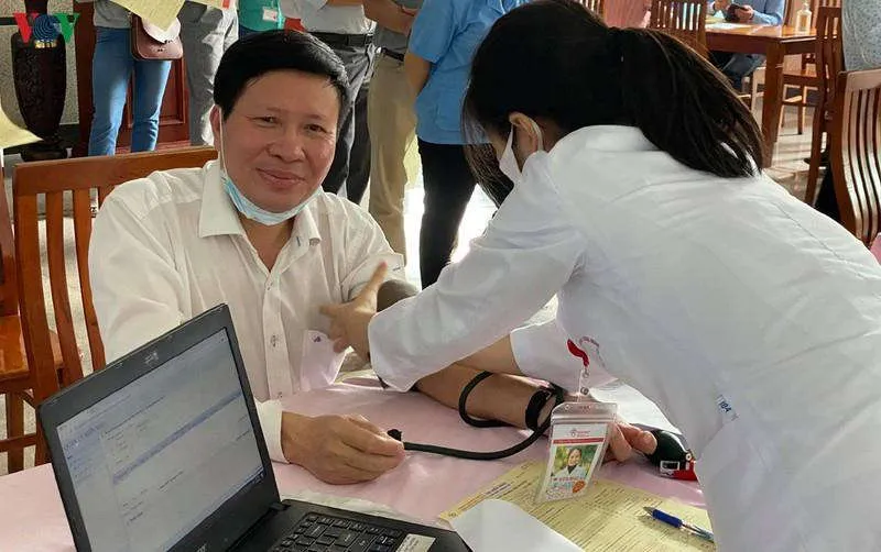 PGS.TS Nguyễn Thế Kỷ, Ủy viên Trung ương Đảng, Tổng Giám đốc VOV đang được lấy máu xét nghiệm.