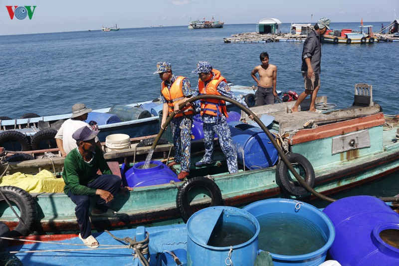 | Vùng Cảnh sát biển 4 cấp nước ngọt cho ngư dân. |