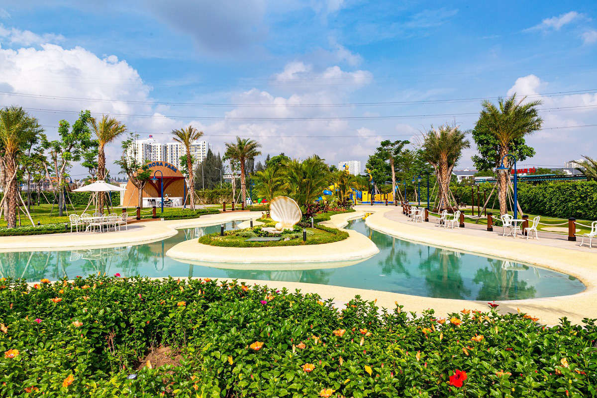 Cảnh quan xanh mát mang âm hưởng Singapore là một trong những điểm nhấn độc đáo của Verosa Park