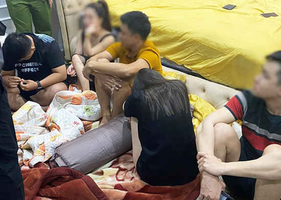 Thời điểm kiểm tra, công an phát hiện nhóm 7 thanh niên nam, nữ đang “bay lắc” trong tiếng nhạc công suất lớn tại phòng ngủ ở tầng 2 ngôi nhà. Tang vật thu giữ gồm 12 viên thuốc lắc, 1 dàn loa di động, 1 bình gió đá, 1 bộ hút shisha, 1 đèn laser.