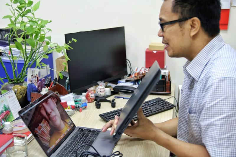 Đại diện nhà trường liên lạc trực tuyến với sinh viên để thông báo về việc tặng máy tính xách tay.
