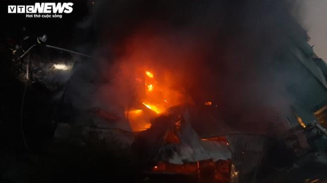Đang cháy dữ dội tại xưởng sản xuất mũ bảo hiểm ở Hà Nội - 2