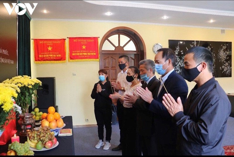 Đúng 10h00 giờ sáng 13/8/2020, toàn thể cán bộ nhân viên Đại sứ quán và đại diện thành viên gia đình do Đại sứ Việt Nam tại Ucraina Nguyễn Anh Tuấn dẫn đầu đã làm lễ dâng hương và dành một phút mặc niệm để tưởng nhớ đồng chí Lê Khả Phiêu- nguyên Tổng Bí thư Ban Chấp hành Trung ương Đảng Cộng sản Việt Nam.