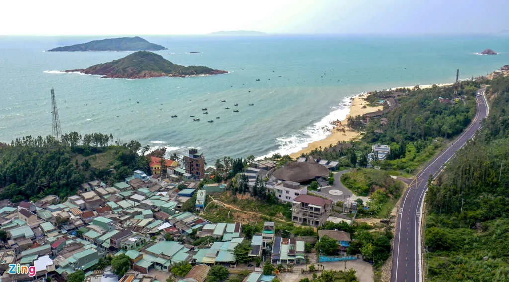 Tuyến du lịch Quy Nhơn - Sông Cầu dọc theo quốc lộ 1D, nơi có hàng loạt khu du lịch xây dựng trái phép. Ảnh: Google Maps.
