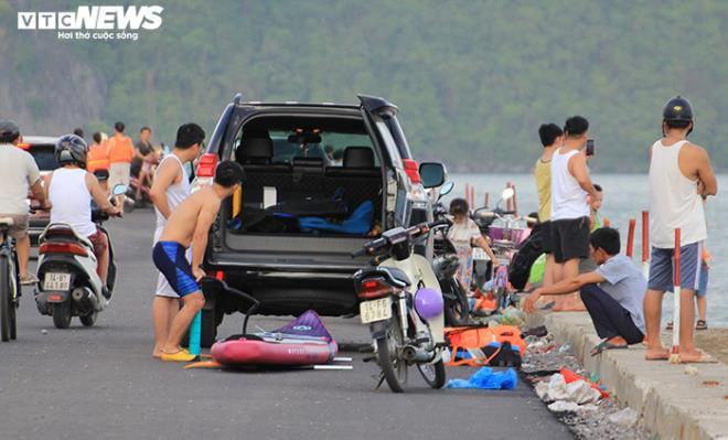 Khu vực tàu thuyền ra vào neo đậu, tiềm ẩn nguy cơ tai nạn xảy ra nhưng nhiều người vẫn đua nhau bơi khá xa so với bờ, bất chấp việc tàu thuyền đang hoạt động trên vịnh.
