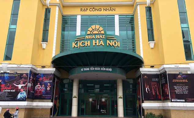 | Nhà hát Kịch Hà Nội ra thông báo tạm dừng hoạt động do ảnh hưởng bởi dịch Covid-19. Ảnh: Lại Tấn |