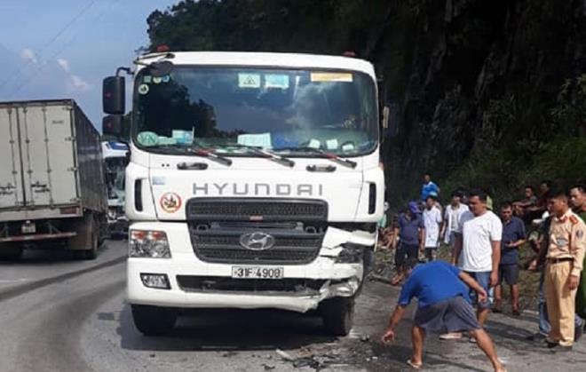 Vụ va chạm giữa xe ô tô tải và xe khách khiến 5 người bị thương.