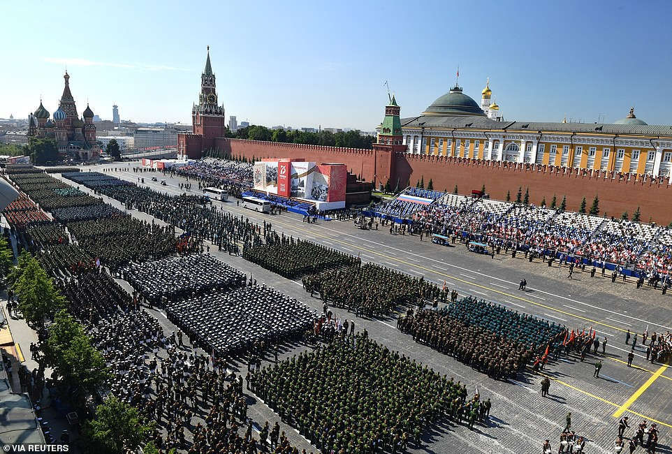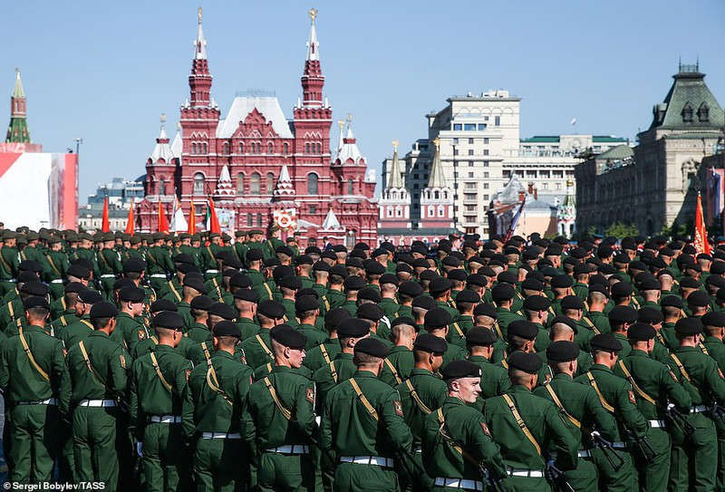 Lễ duyệt binh diễn ra trong bối cảnh tình hình hình dịch bệnh Covid-19 khá nghiêm trọng ở Moscow, Nga. Nhưng không phải quân nhân nào cũng đeo khẩu trang như thế này.