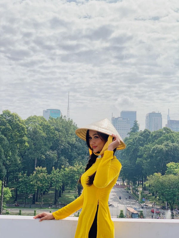 H'Hen Niê có thể mặc đủ các kiểu trang phục khác nhau là nhờ vào sự hoàn hảo của cơ thể. Đường cong tuyệt mỹ của người đẹp càng được phô diễn rõ hơn với chiếc áo dài duyên dáng.