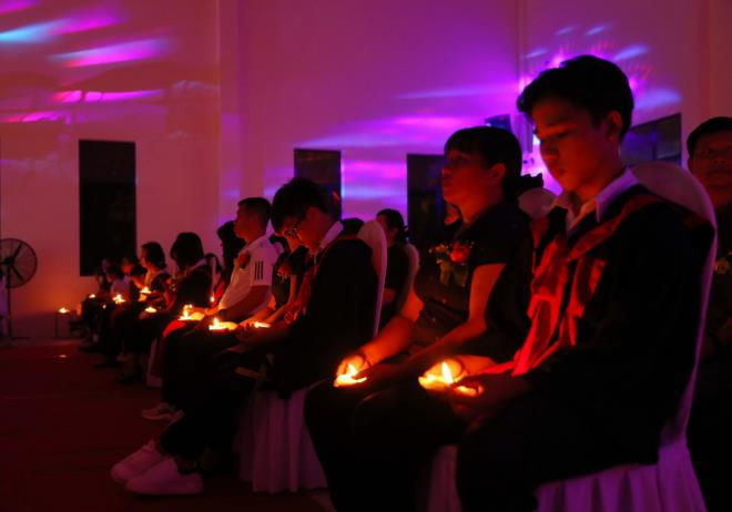 Sau phần bông hồng cài áo, cả không gian hội trường vụt tắt khiến học sinh và các bậc phụ huynh tưởng chương trình có sự cố. Ngay sau đó, những ngọn nến được thầy cô mang từ bên ngoài vào, trao tay cho tất cả những ai có mặt tại buổi lễ.