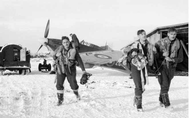 | Phi công và phi cơ của Không quân Hoàng gia Anh. Ảnh: Imperial War Museum. |