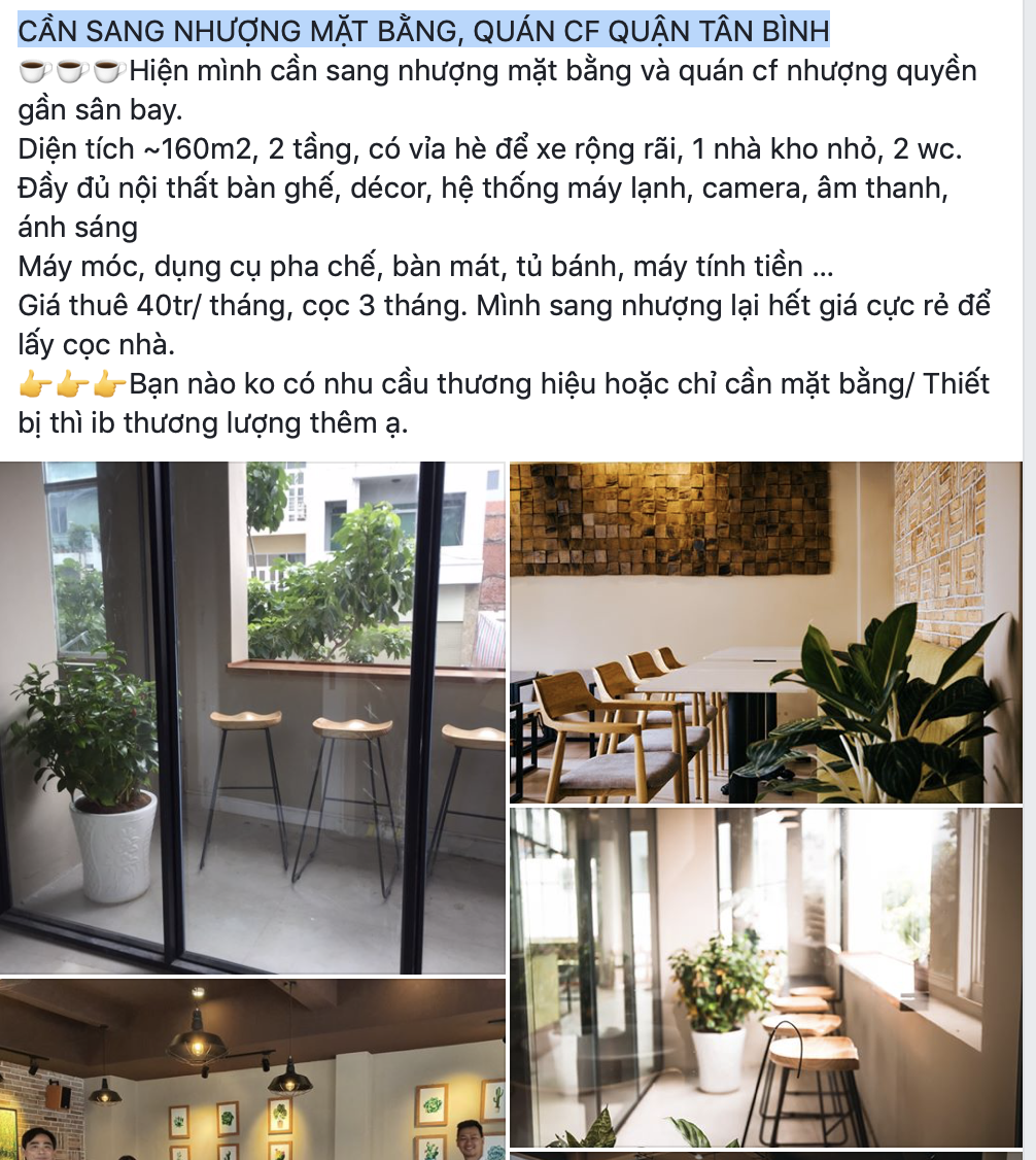 "Giá thuê 35tr/tháng, cọc 3 tháng. Tôi sang nhượng lại hết với giá cực rẻ để lấy cọc nhà", người này cho hay.