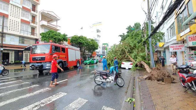 Cây xanh bật gốc, nằm chắn hết 1 chiều lưu thông trên đường Trần Hưng Đạo.