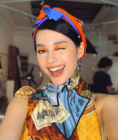 Khánh Linh có gương mặt high fashion nên chẳng ngại thử nghiệm trào lưu mới. Dù vậy, lối makeup tông cam với đôi mắt sặc sỡ vẫn khiến chân dài giảm phong độ nhan sắc so với thường lệ.