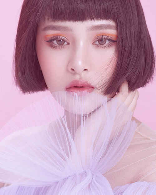 Những cô gái có gương mặt sắc sảo, cá tính dễ phù hợp hơn với mốt trang điểm này. Quỳnh Anh Shyn tinh tế khi sử dụng chỉ một tông hồng cho mắt, má, môi để tổng thể không lòe loẹt.
