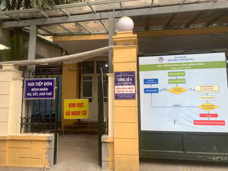 | Quy trình phân luồng, sàng lọc bệnh nhân được thông báo ở cổng bệnh viện Xanh Pôn. |
