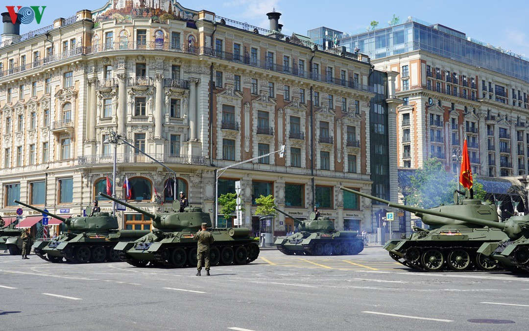 Đúng 10h (giờ Moscow), tại quảng trường Đỏ đã diễn ra các màn diễn tập của các lực lượng tham gia vào cuộc duyệt binh kỷ niệm 75 Chiến thắng. Tiếp đó, xe, máy và các thiết bị, vũ khí từ tuyến phố chính Tver lần lượt tiến qua Quảng trường Đỏ. Để tham gia tổng duyệt, từ sáng sớm, các lực lượng xe, máy và thiết bị này đã từ ngoại ô di chuyển vào trung tâm thành phố.