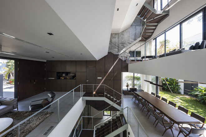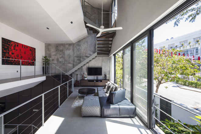 Với thiết kế độc đáo, ngôi nhà được đặt tên theo đúng công năng của nó - Nhà Xếp Tầng. Khoảng thông tầng của ngôi nhà chạy dài từ dưới mặt đất thông lên tầng cao nhất, khiến cho không gian trong nhà trở nên rộng lớn hơn.