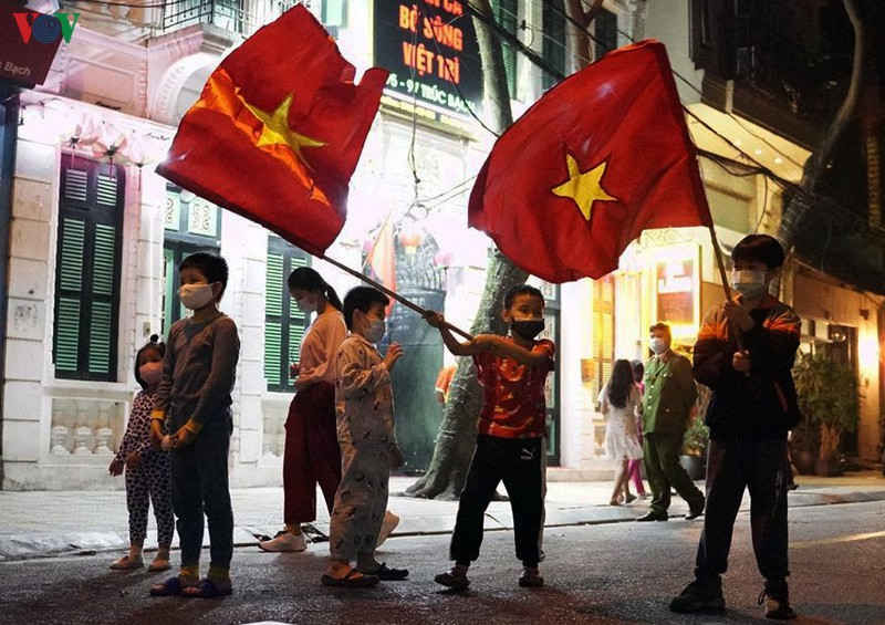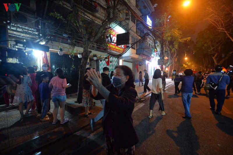Còn người dân khu vực Trúc Bạch xuống đường vỗ tay và liên tục hát bài Ghen Covy ăn mừng.