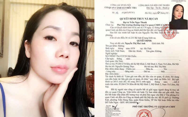 Truy nã đối tượng làm giả hồ sơ bệnh án tâm thần : Cơ quan CSĐT Công an Hà Nội đang truy nã một phụ nữ chuyên làm giả các hồ sơ bệnh án tâm thần. Từ năm 2018 đến tháng 6/2019, Nguyễn Thị Mai Anh (SN 1979, trú tại Khu đô thị Mỹ Đình 2, Nam Từ Liêm) đã thuê một số đối tượng làm giả các Kết luận giám định tâm thần, biên bản pháp y tâm thần, các công văn, giấy tờ của Viện pháp y tâm thần Trung ương, Bệnh viện tâm thần Trung ương, Tòa án Nhân dân tỉnh Thanh Hóa…
