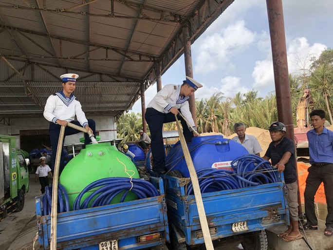 Ngày 18-3, tàu 935 của Lữ đoàn 125, Vùng 2 Hải quân đã tổ chức cung cấp 200 m3 nước ngọt cho người dân xã Tân Trung, huyện Mỏ Cày Nam, tỉnh Bến Tre.