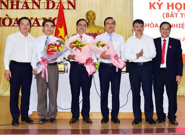 | Ông Phạm Nam Sơn (thứ 3 từ phải sang) khi được bầu giữ chức Chủ tịch UBND huyện Hòa Vang vào tháng 9/2019. |