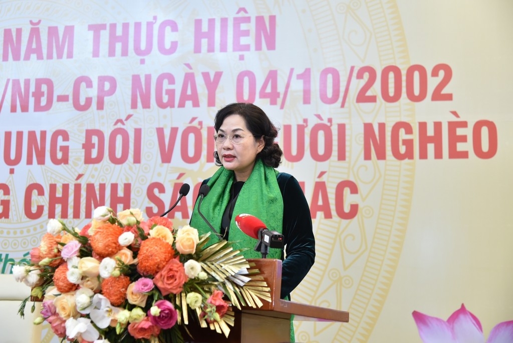 Phó Thủ tướng cho biết, tại Hội nghị Ban chấp hành Trung ương lần thứ 5 khóa VII (1992), Đảng ta đề ra chủ trương: "Phải trợ giúp người nghèo bằng cách cho vay vốn, hướng dẫn cách làm ăn, hình thành quỹ xóa đói giảm nghèo ở từng địa phương trên cơ sở giúp dân và tranh thủ các nguồn tài trợ quốc tế, phấn đấu tăng hộ giàu đi đôi với xoá đói giảm nghèo".