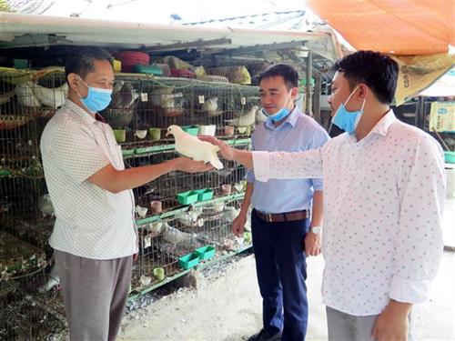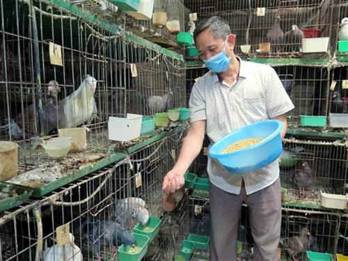 | Bồ câu được các thương lái đến từ các tỉnh Bắc Giang, Bắc Ninh, Hà Nội… đến thu mua tận nhà. Ảnh: Quân Trang-TTXVN |