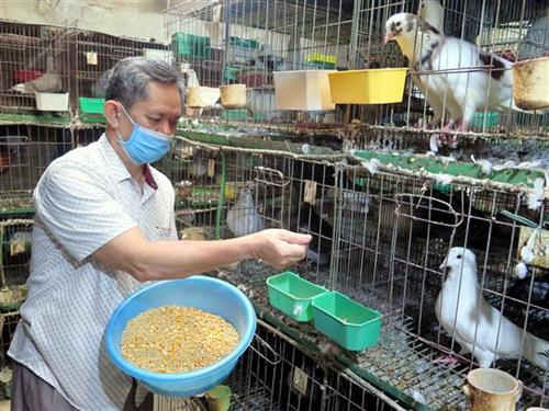 | Thức ăn cho chim bồ câu thường là ngô, thóc, cám... Ảnh: Quân Trang-TTXVN |