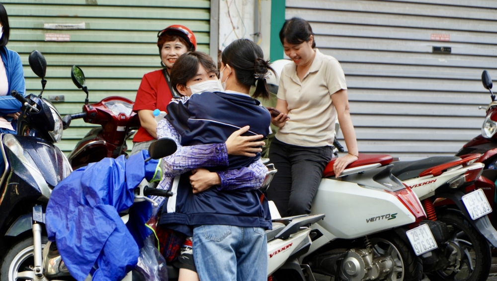 Nhiều cái bắt tay và cái ôm nồng hậu của cha mẹ dành cho con trong kỳ thi quan trọng