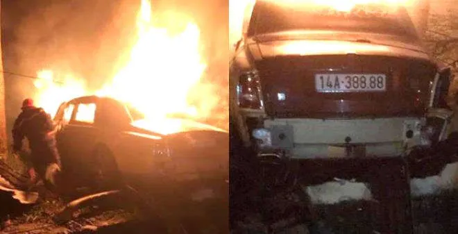 Vào thời điểm trên, chiếc xe Rolls-Royce Phantom BKS 14A - 388.88 đang chạy trên đường bất ngờ tông vào một biển báo và đâm gãy một cây xanh rồi đâm vào tường bốc cháy.