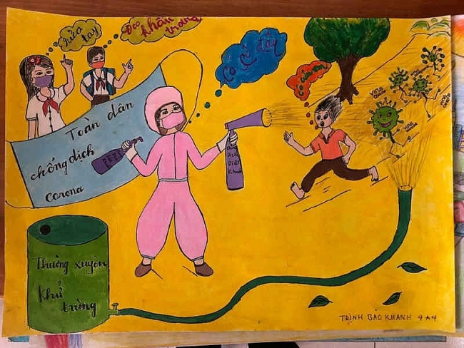 Hưởng ứng cuộc thi “Thông điệp chiến thắng - thiết kế sản phẩm truyền thông, tuyên truyền phòng chống dịch Covid-19" do Quận đoàn Cầu Giấy (Hà Nội) phát động, chỉ trong ít ngày thầy và trò trường Tiểu học Dịch Vọng B đã hoàn thành hàng trăm tác phẩm.
