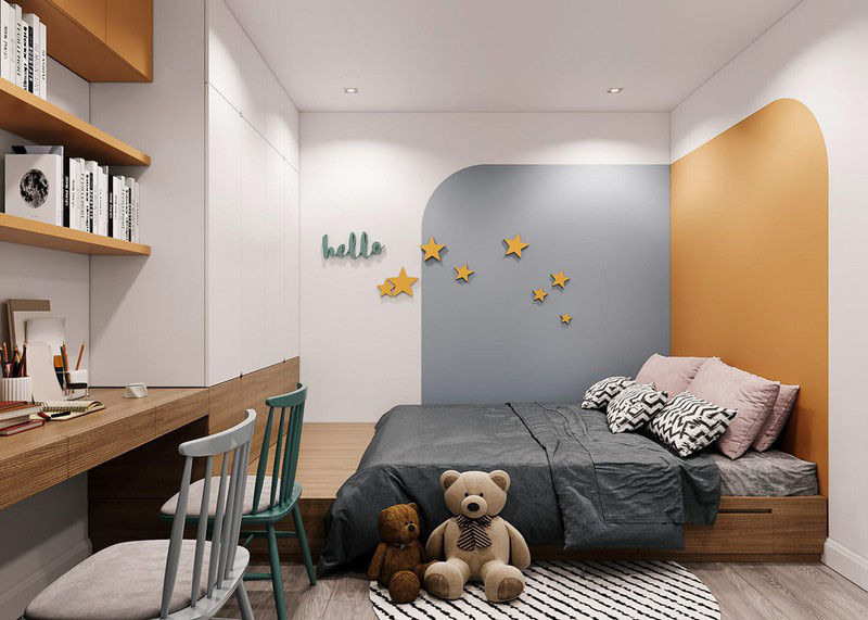 Trong khi vàng và xanh xám khiến phòng trẻ em trở nên có sức hút.