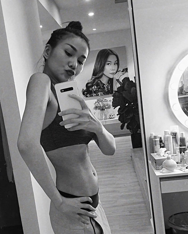 Trên trang cá nhân, siêu mẫu Thanh Hằng đăng ảnh khoe vòng eo với số đo 51. Cô viết: “Không nghĩ khung xương mình nhỏ vậy. Sau 7 ngày ketox (PV: một dạng thực đơn ăn kiêng hạn chế tinh bột và carbs), mình xuống 4 kg, không hiểu mỡ nơi đâu mà có thể xuống nhiều vậy. Eo còn 51 cm”.