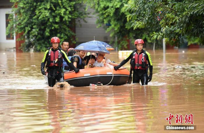 | Di dời người dân trong lũ ở tỉnh Tứ Xuyên ngày 12/8. Ảnh mih họa/Chinanews |