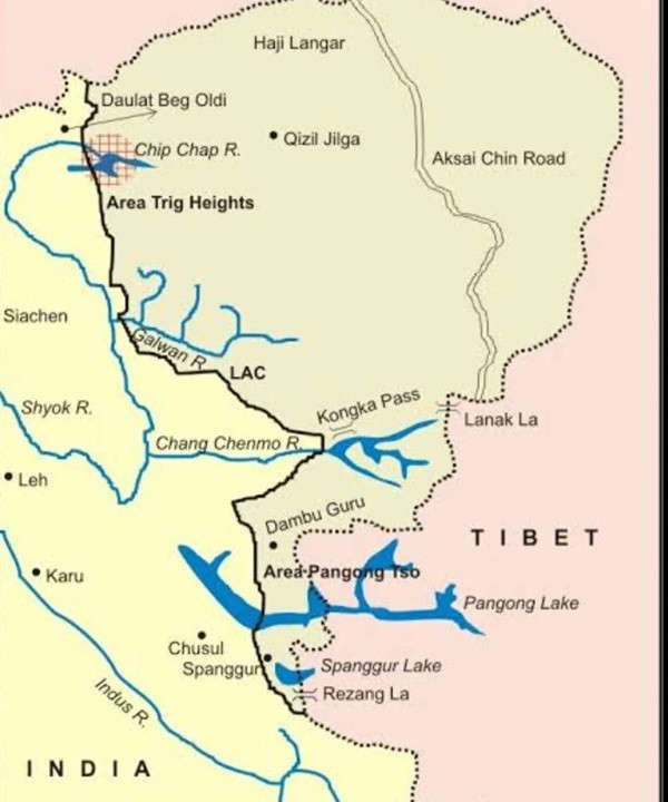 | Bản đồ các vị trí chiến lược trong tranh chấp Ấn - Trung tại Đông Ladakh. Ảnh: Republic world. |