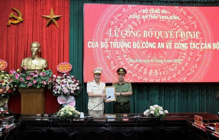 Chiều 1/6, thừa ủy quyền của Bộ trưởng Bộ Công an, Thượng tá Nguyễn Thanh Trường - Ủy viên Ban Thường vụ Tỉnh ủy, Bí thư Đảng ủy, Giám đốc Công an tỉnh Thái Bình trao quyết định điều động và bổ nhiệm chức vụ Phó Giám đốc Công an tỉnh Thái Bình đối với Thượng tá Vũ Mạnh Hà - Trưởng phòng Chính trị - Hậu cần, Cục Công tác Đảng và Công tác chính trị (Bộ Công an).