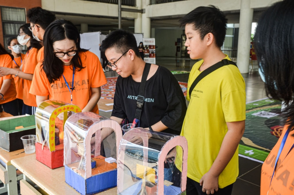 Để truyền đam mê, tình yêu khoa học đến các bạn trẻ, năm nay, Ban tổ chức đã sự chuẩn bị kỹ lưỡng, từ những món đồ trang trí tới thí nghiệm khoa học. Tất cả nhằm mang tới một triển lãm không chỉ bổ ích mà còn an toàn trong dịch Covid-19. Trong đó, Ban tổ chức trao tặng miễn phí khẩu trang hay bố trí những chai nước rửa tay khô tại mỗi quầy.