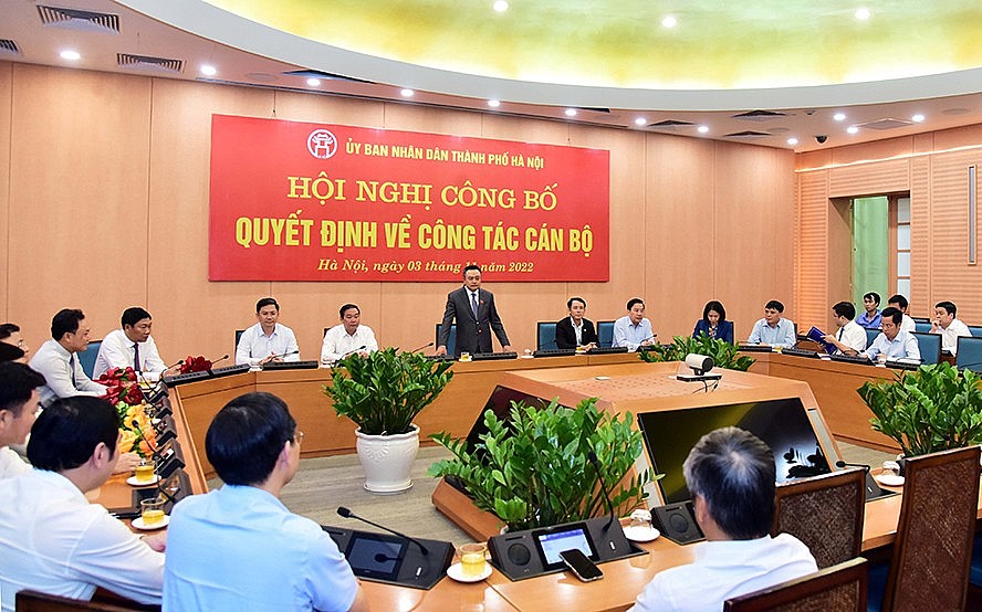 Thực hiện các quyết định về nhân sự của Ban Thường vụ Thành ủy, ngày 3/11/2022, Chủ tịch UBND thành phố Hà Nội Trần Sỹ Thanh đã ký 6 quyết định về công tác cán bộ. Tại hội nghị, Giám đốc Sở Nội vụ Vũ Thu Hà đã công bố các quyết định.